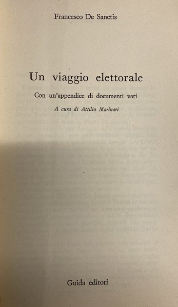 UN VIAGGIO ELETTORALE. CON UN'APPENDICE DI DOCUMENTI VARI. A CURA DI ATTILIO MARINARI | Libros antiguos y modernos | Francesco De Sanctis