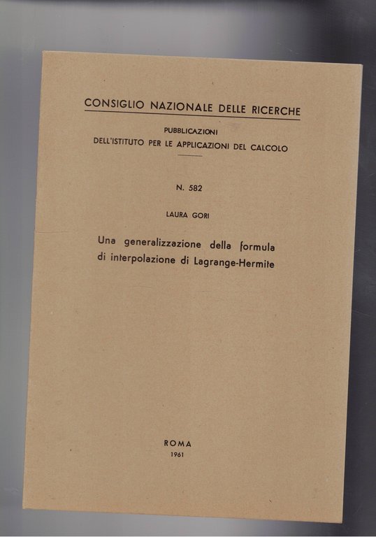 Una generalizzazione della formula di interpolazione di Lagrange-Hermite. Estratto.