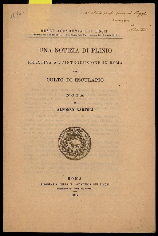 Una notizia di Plinio relativa all'introduzione in Roma del culto di Esculapio