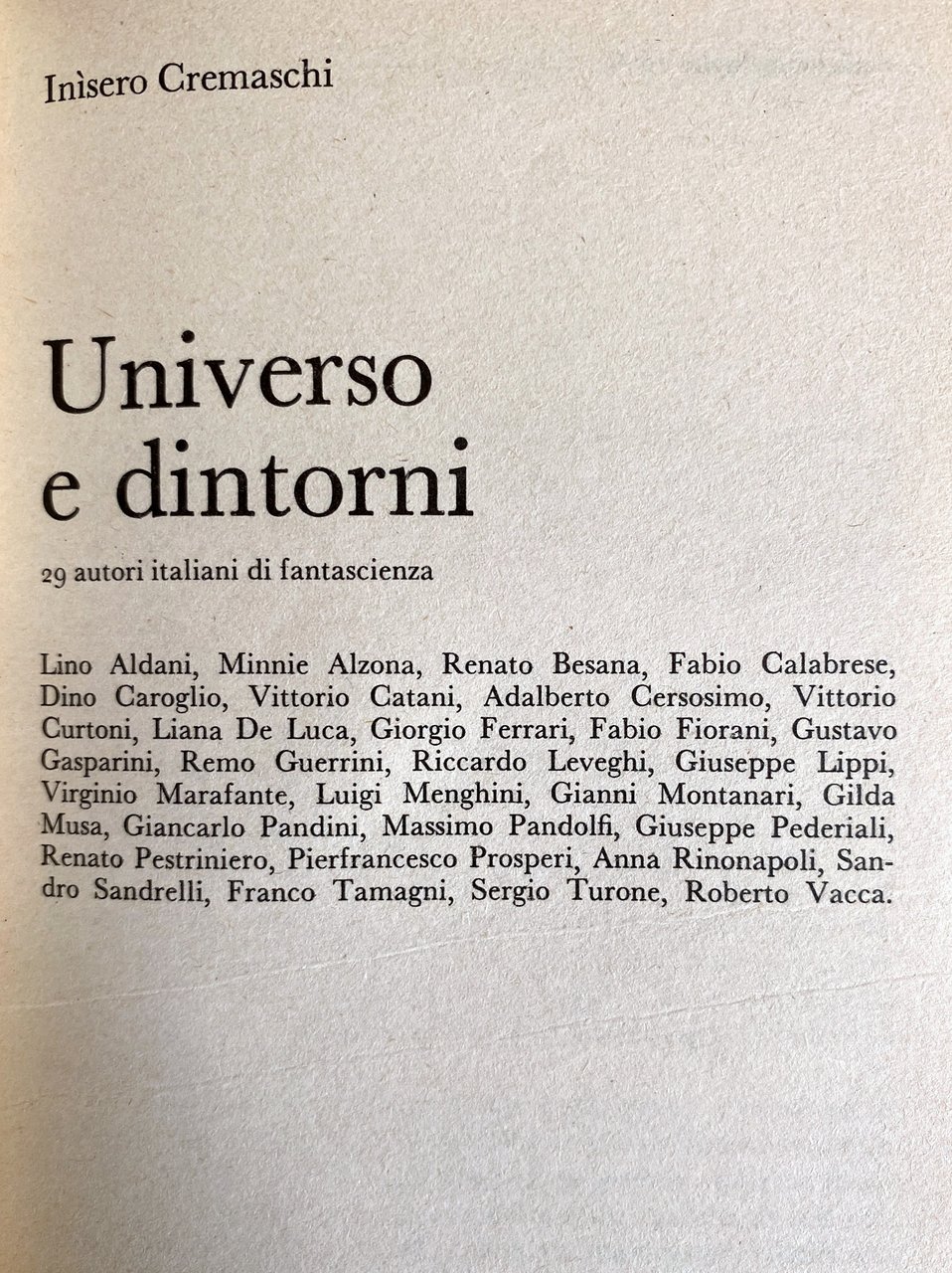 UNIVERSO E DINTORNI: 29 AUTORI ITALIANI DI FANTASCIENZA | Libros antiguos y modernos | Lino Aldani, Minnie Alzona, Renato Besana, Fabio Calabrese, Dino Caroglio, Vittorio Catani, Adalberto Cersosimo, Vittorio Curtoni, Liana De Luca, Giorgio Ferrari, Fabio Fiorani, Gustavo Gasparini, Remo Guerrini, Riccardo Leveghi, Giuseppe Lippi, Virginio Marafante, Luigi Menghini, Gianni Montanari, Gilda Musa, Giancarlo Pandini, Massimo Pandolfi, Giuseppe Pederiali, Renato Pestriniero, Pierfrancesco Prosperi, Anna Rinonapoli, Sandro Sandrelli, Franco Tamagni, Sergio Turone, Roberto Vacca, Inisero Cremaschi