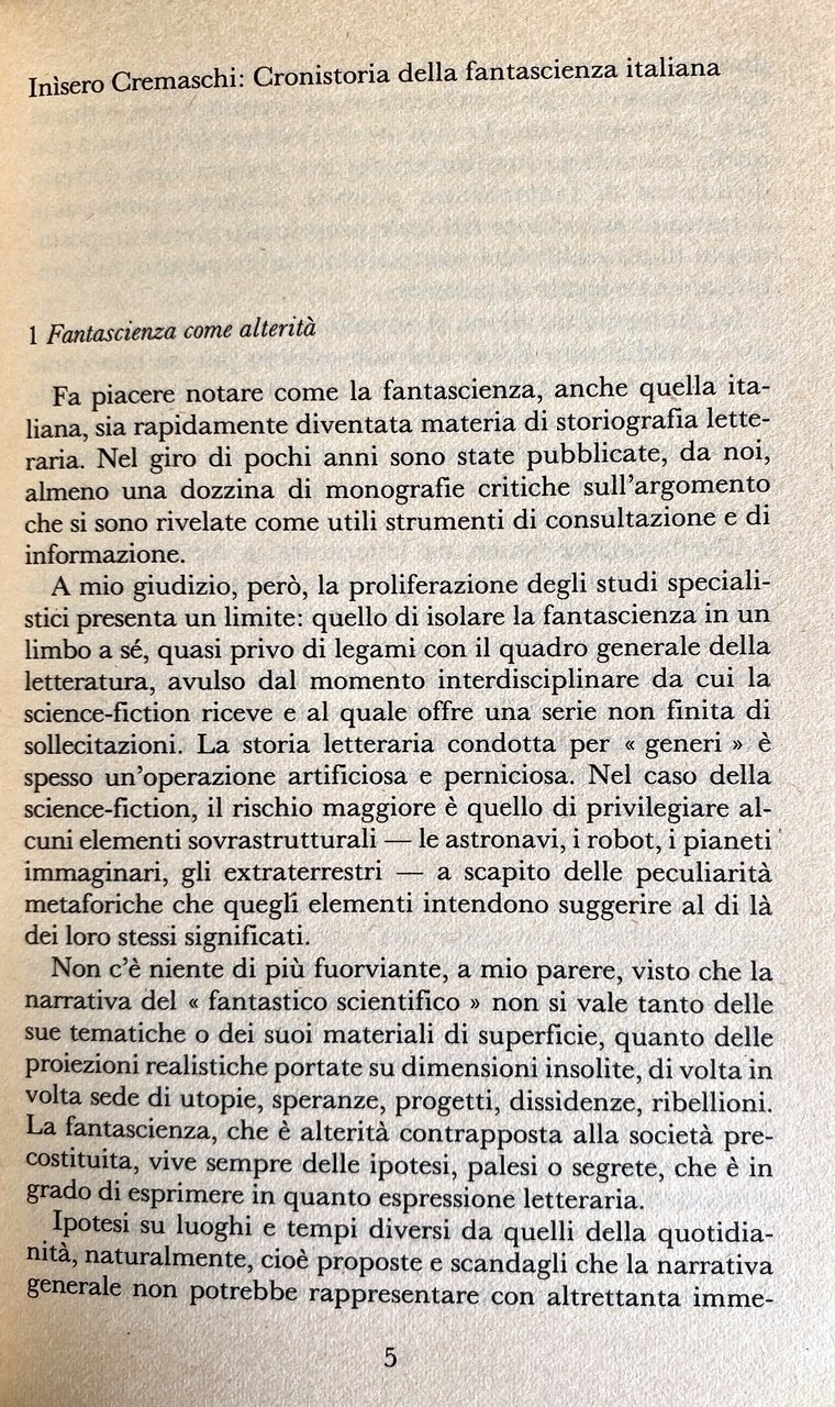 Soggetti: Critica letteraria Antologie Letteratura Storiografia Raccolte Racconti Romanzi fantascientifici Fantascienza Fantasy Scrittori italiani Vintage Collezionismo Arpino Landolfi Moravia Elémire Zolla Massimo Lo Jacono Giulio Raiola Futuro Riviste Sperimentazione che, in Suspense Americanofilia Narrativa Vampiri Mostri Horror Splatter Terrore Orrore Interplanet Spazio Alieni Maurizio Viano Della Corte Fouad Fascismo Oltre il cielo Esoterismo Vulcani Ivo Prandin Folletti Extraterrestri Cimiteri Cosmo Galassia Fumetti Cittadini Lomellina Mutazioni genetiche Lucchesia Gas tossici Brianza Eroi Eroine Varesotto Ispra Seveso Diossina Anni Quaranta Trenta Cinquanta Sessanta Settanta Ottanta Cibernetica Dino Buzzati Alberto Savinio Massimo Bontempelli Storia Nucleare Bomba atomica Terra Luigi Motta Emilio Salgari Avventura Esotismo Leopardi Palinodia Isaac Asimov Hugo Gernsback Operette morali Hiroshima Novecento Ottocento Precursori Mario Stollo Marienbad Comisso Pino Puggioni Eclisse Robot Prime Edizioni boom Apocalisse de' Rossignoli Alcide Alessandro Silj Pianeta Francesco Parenti Pier Luigi Pagani Giordano Pitt Macchina Cyborg Primo Levi Damiano Malabaila Carlo Pagetti Ugo Rota Livio Horrack Carla Parsi Bastogi Leandro Lucchetti fanzines Giorgio Scerbanenco Asteroide Galassia Asteroide Utopia Fantapolitica Gialli Mistero Incontri ravvicinati Pianeti Marte Vita Navicelle spaziali Umanoidi Intelligenza Viaggio Gotico Igino Tarchetti Julius Verne Guerra Marziani Yambo Stocco Bertinetti Prandi Supereroi Cultura di massa Urania Atlantide UFO Gianfranco De Turris Anni d'oro Sputnik Cosmo Ponzoni Oltre il cielo Galaxy Rapuzzi Johannis Peter Kolosimo Malaguti Ernesto Vegetti Catalogo Italcon Fruttero Sergio Solmi Giovannoli Ennio Flaiano Mattoli Paolo Heusch Enrico Novelli Cinema di genere fantascientifico Fumetto Mondi nuovi Andromeda Monicelli Ernesto Gastaldi New Wave Tecnologia Tommaso Landolfi Gamma Sociologica Catastrofismo Marxismo critico Editrice Nord Prinzhofer Riccardo Valla Pergameno Piergiorgio Nicolazzini Umberto Eco Spinazzola Pocket Armenia Star Trek Ignoto Arkadij Strugackij Brian Aldiss Danilo Arona Silvio Ceccato Celli Tullio De Mauro Gillo Dorfles Goffredo Fofi Emilio Garroni Fredric Jameson Danilo Mainardi Ferruccio Masini Giusto Monaco Lucio Lombardo Radice Russo Ugo Volli Gianni Vattimo Jean Baudrillard Darko Suvin Marc Angenot Tatiana Chernisheva de Nardis Charles Elkin Jacques Goimard Jörg Hienger Ion Hobana Julius Kagarlitsky Manfred Nagl Rafail Nudelman Franz Rottensteiner Lo scrittore Gian Filippo Pizzo Italo Calvino Cosmicomiche Autori atipici Guido Morselli Gruppo 63 Fandom Cozzi Paolo Brera Futuria Fantasia Effetti speciali Mario Bava Contestazione Tempo Distopici Cyberpunk Saggistica Libri rari Agnes Belaes Bi-Ghil Borsari Delagrange Fahan François Frast Gerald Giannina Palmer Irene John Wheeler Milton Narrativa Pioneer Queirolo Samuele Grange Satelliti Tisigore Vulture Zorn Lettura Literary criticism Anthologies Literature Historiography Collections Short stories Science fiction novels Italian writers Collectibles Future Magazines Experimentation Suspense Americanophilia Vampires Monsters Terror Horror Space Aliens Fascism Beyond the sky Esotericism Volcanoes Goblins Extraterrestrials Cemeteries Cosmos Galaxy Comics Citizens Genetic mutations Toxic gases Brianza Heroes Heroines Dioxin Golden years Forties Thirties Fifties Sixties Seventies Eighties Cybernetics Nuclear history Atomic bomb Earth Adventure Exoticism Twentieth century Nineteenth Precursors Eclipse First editions Asteroid Galaxies Politics Detective Mystery Close encounters Planets Mars Life Spaceships Humanoids Intelligence Travel Gothic War Martians Superheroes Mass culture Stock Genre cinema New worlds Technology Sociology Catastrophism Unknown Cosmicomics Atypical Authors Groups Fantasy Special Effects Protest Time Dystopia Non-fiction Rare Books Reading