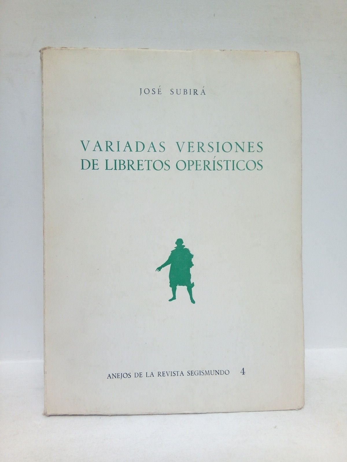 Madrid: C.S.I.C., 1973.- XII,200 p.- 4º (22,4 x 16 cm); Cartulina Ed. con solapas.- (Anejos de la Revista Segismundo. 4).- CONTIENE: En la Corte de Felipe V; En la Corte de Fernando VI; En el teatro barcelonés del siglo XVIII; En la producción de D. Ramón de la Cruz y en la de Comella; Una cantata barcelonesa del Maestro D. Mateo Ferrer; Libretos estampados en Madrid, 1832-1837; Libretos estampados en Valencia, 1833-1837; Libretos estampados en Cádiz, 1835-1837; Un "Belisario" barcelonés del año 1840; Un transitorio teatro isabelino; Dos versiones del "Barbiere di Siviglia" rossiniano; Dos versiones de "L'Elisire d'amore" donizettiano; Tres libretos ultramarinos del Verdi juvenil; Enrico Petrella y su ópera "Yone"; Operas del Maestro Felipe Pedreli; Operas del Maestro Emilio Serrano; Operas del Maestro Tomás Bretón.* TEATRO LÍRICO, ÓPERA, ZARZUELA