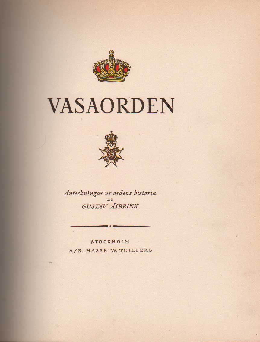 VASAORDEN. - Anteckningar ur ordens historia av Gustav Asbrink.