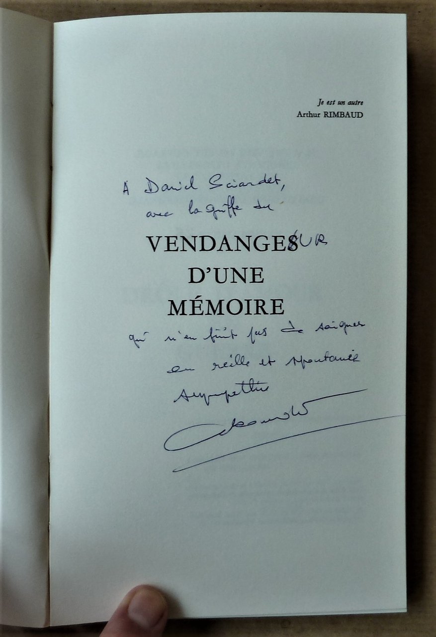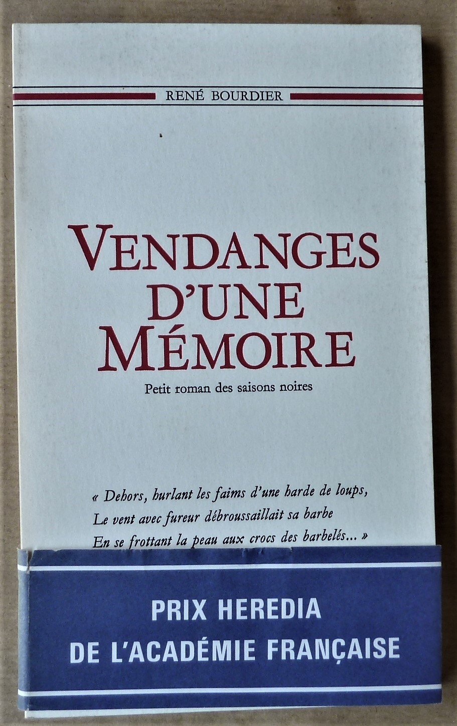 Vendanges d'Une Mémoire. Petit romans des saisons noires. Prix Hérédia de L'Académie Française1990.