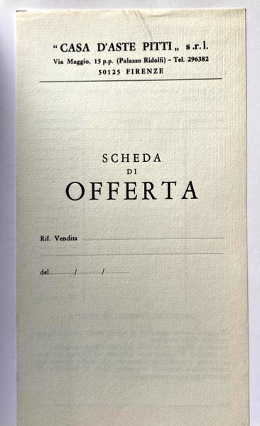 Soggetti: Arte, Antiquariato, Modernariato, Collezionismo, Collezioni private, Vendite, Aste, Stima, Offerte, Cataloghi, Dipinti, Pittura, Mobili, Arredamento, Antichità, Tappeti, Oggetti rari, Incanto, Libri Vintage Fuori catalogo, Illustrati, Fotografie, Elenchi, Stili, Decorazioni, Anni Ottanta, Condizioni di vendita, Committenze, Schede, Impegno, Acquisto, Garanzia, Esposizioni, Opere pregiate, Aggiudicazione, Lotti, Stock, Beni culturali, Patrimonio, Conservazione, Direttore, Maestri Toscani, Lusso, Boschi, Lippi, Maso da San Friano, Maestri Veneti, Cariani, Bombelli, Ridolfo di Lodi, Pittori italiani, J. Palma il Vecchio, Lazzerini, Della Vecchia, Nature morte, Natura morta, Giacomo Recco, Fioravino, Mario Nuzi, Fiori, Comò Ferraresi, Bureau Romano, Cineserie, Mobili laccati, Poltrone, Commissioni, Paesaggio, Circasso, Scuole inglese, Francese, Annibale Gatti, Pietro Rotari, Scuola italiana, Olandese, Fiamminga, Olio su tavola, Legno, Noce, Decori, Sedie, Comodini, Statuette, Scuola Fiorentina, Ritratti, Madonne, Divani, Specchiere, Incisioni, Guida Karaja, Kasak, Karabagh, Kirman, Armadio, Angoliera, Orcio, Stampe geografiche, Brocche, Orbis Terrarurm, Cassapanca, Rarità, San Giovanni Battista, Art, Antiques, Modern Antiques, Collectibles, Private Collections, Sales, Auctions, Estimate, Offers, Catalogs, Paintings, Painting, Furniture, Decor, Antiquities, Carpets, Rare Objects, Enchantment, Out of Print Books, Illustrated, Photographs, Lists, Styles, Decorations, Eighties, Sales conditions, Clients, Cards, Commitment, Purchase, Guarantee, Exhibitions, Fine works, Awarding, Lots, Cultural heritage, Heritage, Conservation, Director, Tuscan Masters, Luxury, Venetian Masters, Italian Painters, Still lifes, Ferraresi dresser, Chinoiserie, Lacquered furniture, Armchairs, Commissions, Landscape, Circassian, English schools, French, Italian school, Dutch, Flemish, Oil on board, Wood, Walnut, Decorations, Chairs, Bedside tables, Statuettes, Florentine School, Portraits, Madonnas, Sofas, Mirrors, Engravings, Wardrobe, Corner cupboard, Jar, Geographical prints, Jugs, Chest, Rarity