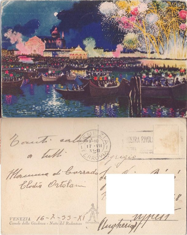 Venezia. Canale della Giudecca. Notte del Redentore. Viaggiata 1933