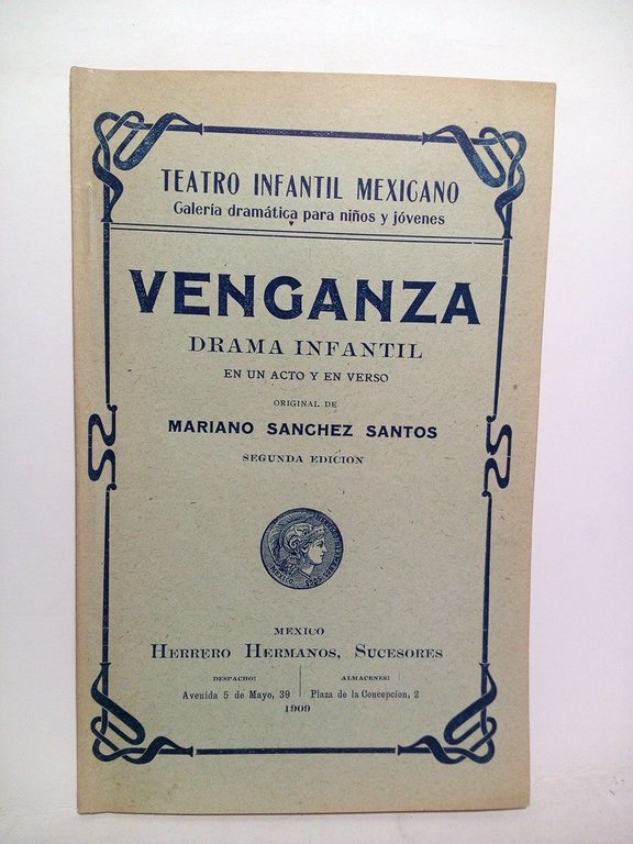 2ª Ed.- México: Herrero Hermanos, Sucesores, 1909.- 28 p., [2 h.]; 8º (17,7 x 11,3 cm).- (Col. Teatro Infantil Mexicano. Galería para niños y jóvenes).- Raro.* En excelente estado de conservación. TEATRO Y CINE IBEROAMERICANOS
