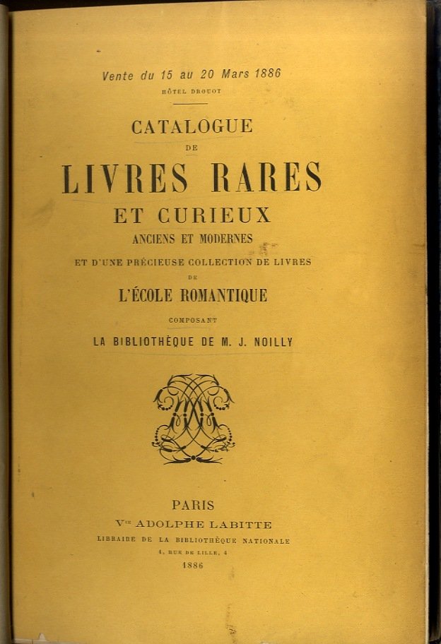 Vente de Livres Rares et Curieux, anciens et modernes et d'une précieuse collection de livres de l'Ecole romantique composant la bibliothèque de M. J. Noilly. Paris, Drouot, Mars 1886.