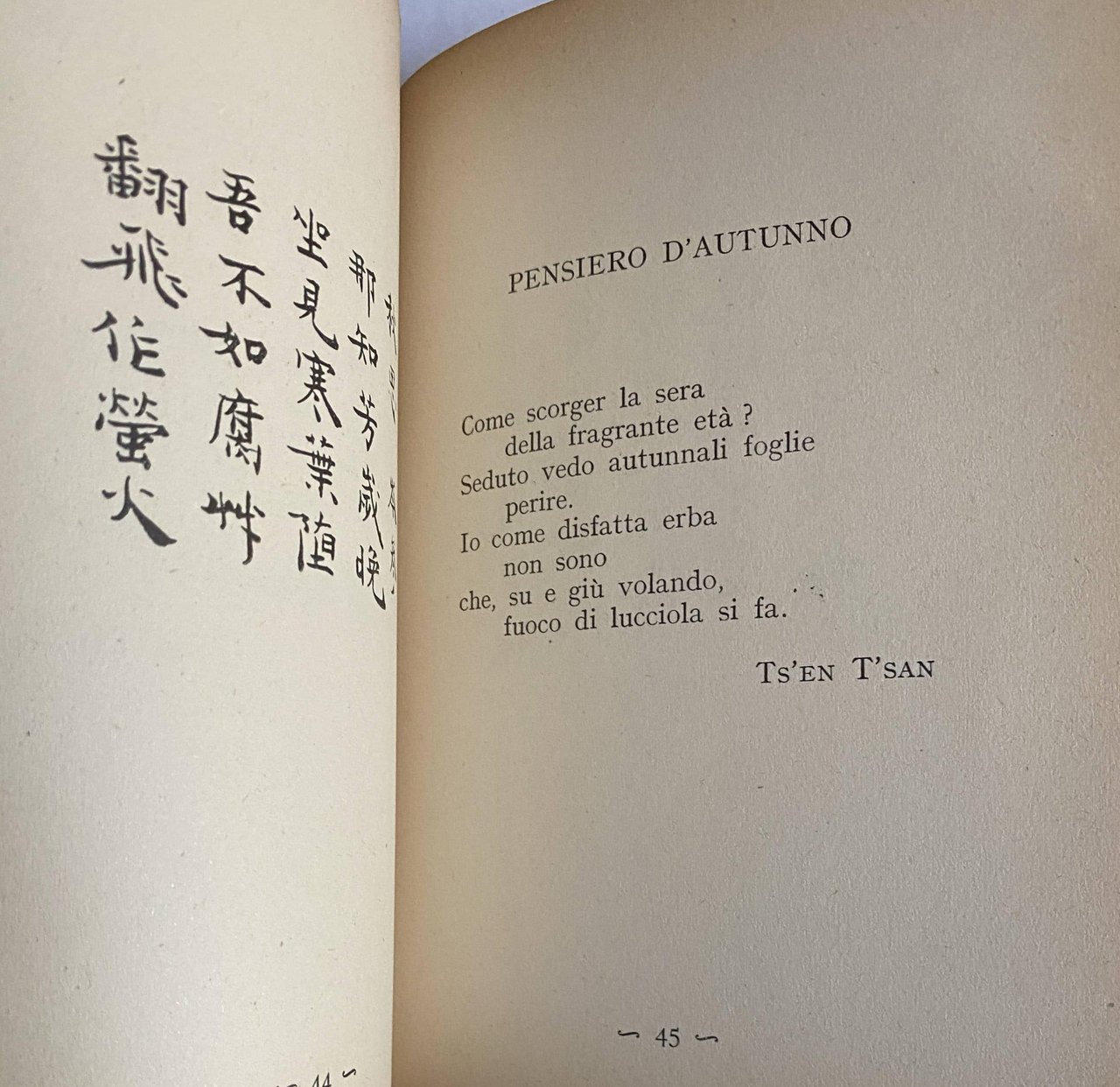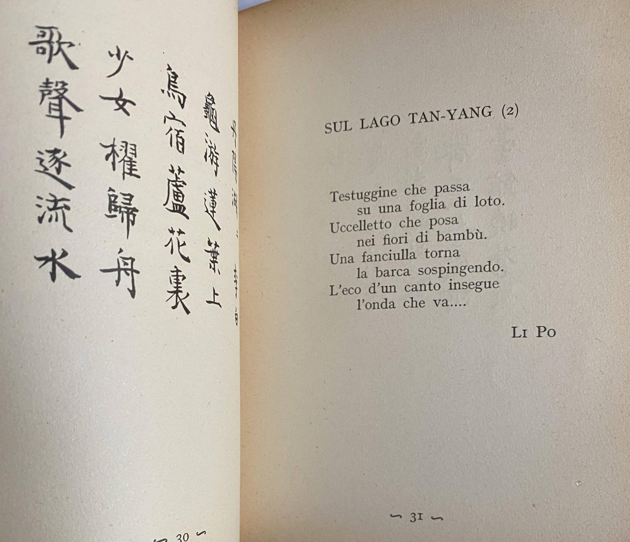 - Letteratura cinese, Poesia, Poesie brevi, Schizzi, Poetica, Ideogrammi, Disegni, Musicalità, Ritratti, Versi quinari, Rime, Melodie, Metrica, Quartine, Raccolte poetiche, Antologie, Sinologia, Collezionismo, Libri illustrati, Libri rari, Testo originale a fronte, Poeti cinesi, Età d'oro, Lirica, Liriche, Critica letteraria, Studi orientali, Studi sinologici, Storia culturale, Cultura classica, Classici, Opere poetiche, Antologia, Primavera, Stagioni, Autunno, Nostalgia, Gioia, Animali, Natura, Armonia, Amore, Fiumi, Neve, Solitudine, Mare, Notte, Silenzio, Laghi, Paesaggio, Malinconia, Asiatica, Fiori, Alberi, Prime edizioni, Rarità, Anni Cinquanta, Rima, d'Occasione, Orientalistica, Da collezione