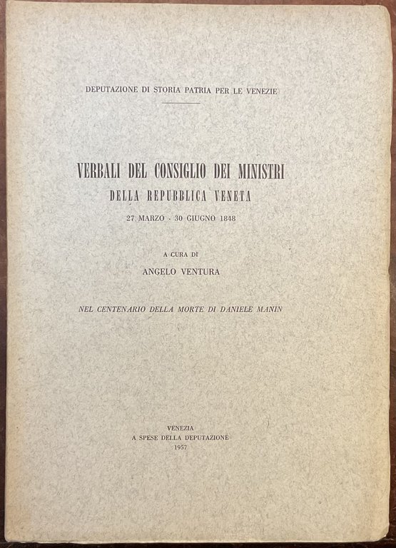 Verbali del Consiglio dei Ministri della Repubblica Veneta. 27 marzo - 30 giugno 1848- nel centenario della morte di Daniele Manin