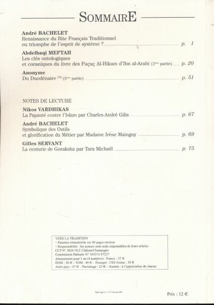 Vers la tradition 2008 Vezrs la tradition, 2008. In-8 broché de 82 pages. N°110. Très bon état.