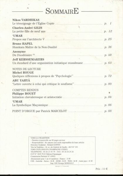 Vers la tradition 2002 Vezrs la tradition, 2002. In-8 broché de 88 pages. N°89. Très bon état.