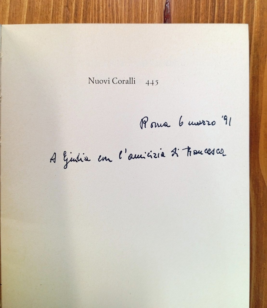 Prima edizione. Collana "Nuovi coralli", 445. In apertura, dedica autografa dell'autrice a Giulia [Massari, 1924 - 2015], giornalista vicina al milieu politico e culturale romano dagli anni sessanta in poi - Brossura editoriale di 81 pagine. Esemplare in ottime condizioni.