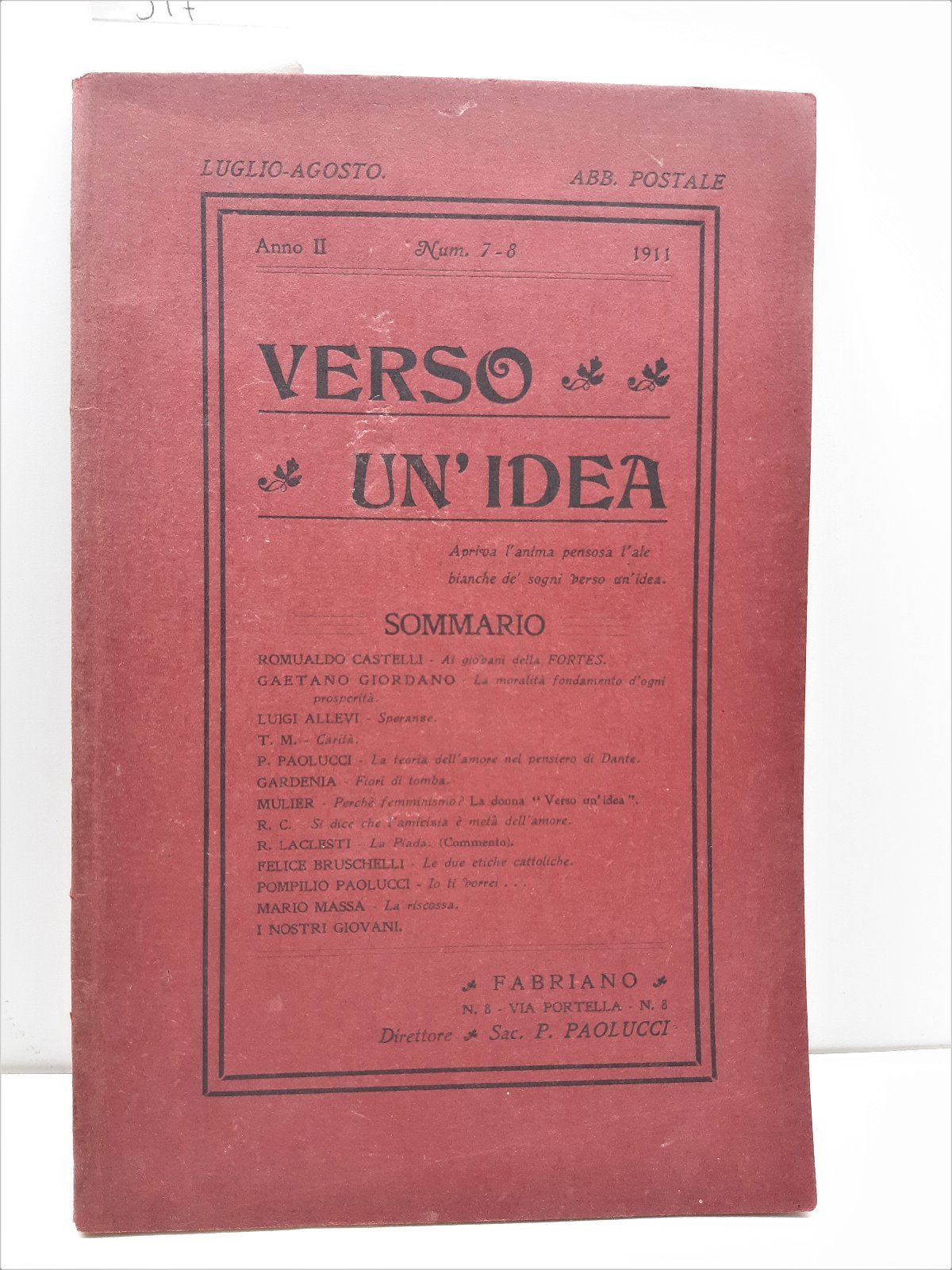 Verso Un'idea rivista di cultura e propaganda n. 78 1911 Diocesi Fabriano-Matelica