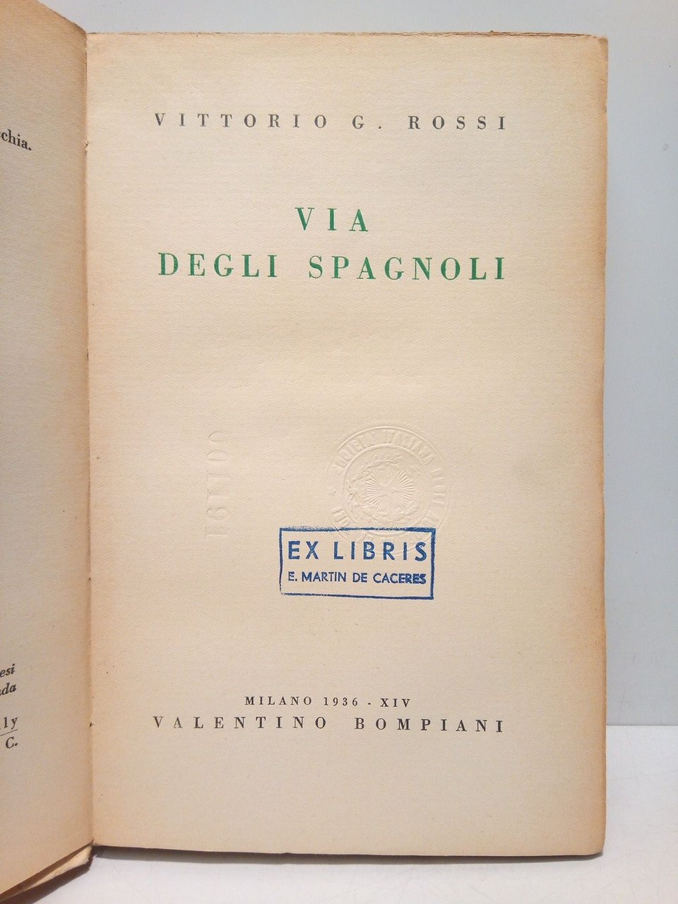 [PRIMERA EDICION].- Milano: Valentino Bompiani, 1936.- [6 h.], 292 p., [2 h.]; 4º menor (21,5 x 13,9 cm); Texto en italiano; Cartoné Flexible Ed. con camisa.- (Libri Scelti. Panorama del nostro tempo. Vol. XXXIV).- Curioso ensayo de historia de España, vista desde la óptica del momento fascista italiano, justo antes del 18 de julio de 1936, ya que el libro data del día 15 del mes de Enero de dicho año.* La camisa restaurada de pequeñas faltas. Un pequeño ex-libris tampón en la portada. Algunas hojas del texto tienen algunas notas a tinta y subrayados. Salvo esto el libro se encuentra en buen estado general. IDEA DE ESPAÑA, DE LOS ESPAÑOLES Y DE LA CULTURA ESPAÑOLA EN GENERAL