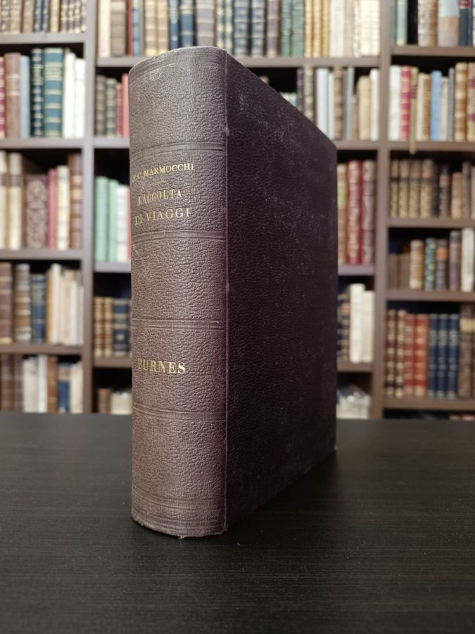 3 parti in 1 volume in-8° (cm. 23), legatura coeva in piena percallina, dorso liscio con titolo in oro e filetti a secco, tagli spruzzati; pp. 204, 483 [1b], 405 [3] in stato molto buono; con 18 belle tavole in rame fuori testo, di cui 5 carte geografiche, disegnate dal Marmocchi e incise dal Lasinio; graziosi capilettera figurati; lievi fioriture sparse. Prima traduzione italiana della relazione fatta dal diplomatico, agente segreto ed esploratore scozzese Alexander Burnes del suo viaggio dalla foce dell'Indo a Lahore e delle sue peregrinazioni attraverso l'Asia centrale. Collana «Raccolta di Viaggi dalla scoperta del Nuovo Continente fino a' dì nostri» compilata dal Marmocchi, tomi VII-IX. Traduzione di D. Agostini. Cfr. Brunet I, 1409; Graesse I, 577. Esemplare molto buono. (NK5)