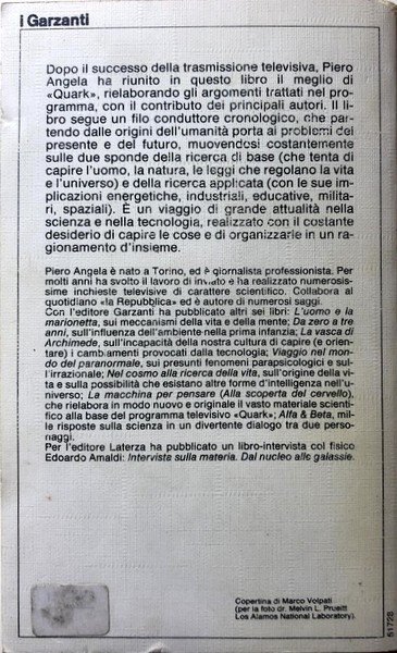 Soggetti: Saggi, Scienze naturali, Divulgazione scientifica, Scienza moderna, Teorie scientifiche, Aneddoti, Programmi televisivi cult, Scienziati, Scoperte scientifiche, Esperimenti, Prova, Fisica classica, Spazio, Astronomia, Progresso scientifico, Genetica, DNA, Genoma, Cromosomi, Cervello, Vita, Homo Sapiens, Sviluppo umano, Etologia, Animali, Apprendimento animale, Idee, Informazione, Comportamento umano, Gelosia, Infedeltà, Segregazione, Sottomissione femminile, Geni, Ereditarietà, Intelligenza, Darwin, Newton, Einstein, Enrico Fermi, Nucleare, Atomo, Studi culturali, Società, Gruppi sociali, Ipnosi, Psicologia, Mondo, Universo, Quark, Galassie, Stelle, Astri, Astronomia, Galileo Galilei, Neutrini, Sistema solare, Biologia, Cellule, Malattie, Medicina, Cancro, Macchina del tempo, Energia, Carbone, Petrolio, Risorse energetiche, Inquinamento ambientale, Quattrini, Guerra, Futuro, Razionalità, Libri Vintage, Fuori catalogo, Libri illustrati, Letture per bambini, ragazzi e adulti, Big Bang, Biotecnologie, Metodologia scientifica, Manuali divulgatori, RAI, Alberto, Essays, Natural sciences, Scientific disclosure, Modern science, Scientific theories, Anecdotes, Cult television programs, Scientists, Scientific discoveries, Experiments, Test, Classical physics, Space, Astronomy, Scientific progress, Genetics, Genome, Chromosomes, Brain, Life, Development Human, Ethology, Animals, Animal learning, Ideas, Information, Human behavior, Jealousy, Infidelity, Segregation, Female submission, Genes, Inheritance, Intelligence, Nuclear, Cultural studies, Society, Social groups, Hypnosis, Psychology, World, Universe, Galaxies, Stars, Astronomy, Neutrinos, Solar system, Biology, Cells, Diseases, Medicine, Cancer, Time machine, Energy, Coal, Oil, Energy resources, Environmental pollution, Money, War, Future, rationality, Books Out of print, Illustrated books, Readings for children, teens and adults, Biotechnology, Scientific methodology, Popular manuals