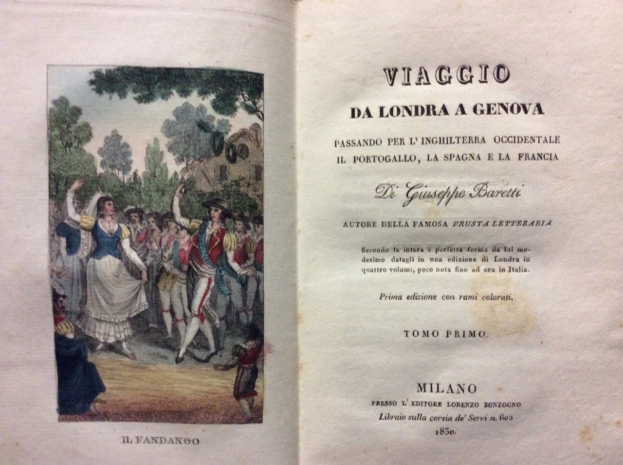 In-16 gr. (mm. 199x115), 4 volumi in 2 tomi, mz. pelle coeva con ang. (lievi abras.), fegi e titolo oro al dorso, conservate brossure originali, pp. 277;(4),285; 283; 4),295; molto ben illustrato fuori testo, come da Indice, da 9 tavole inc. in rame e colorate a mano (con suite in bianco e nero) relative a monumenti spagnoli e portoghesi. Fanno parte della Collana "Raccolta di viaggi dopo quelli di Cook". Fioriture e/o arrossature più o meno lievi intercalate nel testo, peraltro esemplare ben conservato, con barbe.