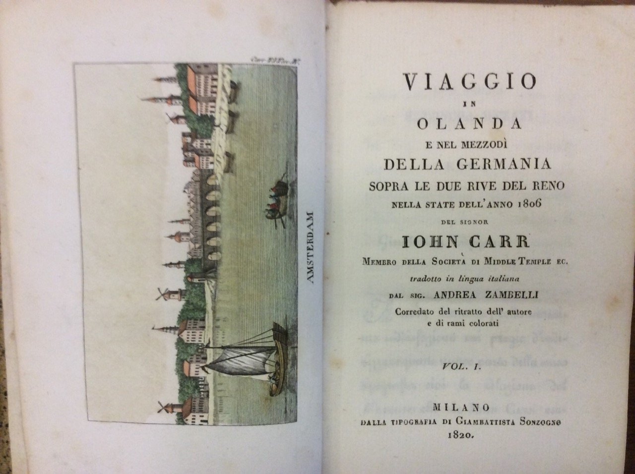 VIAGGIO IN OLANDA E NEL MEZZODÌ DELLA GERMANIA SOPRA LE DUE RIVE DEL RENO NELLA STATE DELL'ANNO 1806. - Tradotto in lingua italiana dal Sig. Andrea Zambelli.