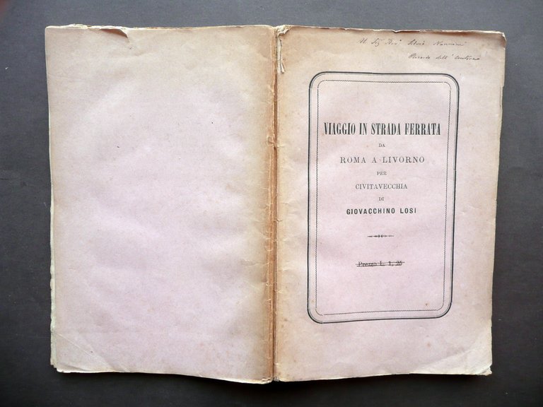 Viaggio in Strada Ferrata da Roma a Livorno G. Losi Lazzeri Siena 1874 Autografo