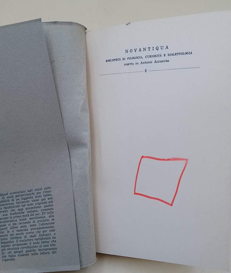 In 8'. br.ed. con risv., pp.84., ; Volgarizzamento inedito del quattrocento., piatto ant. con evidenti segni di piegatura, segno a pennarello rosso all'occhiello, interno in ottimo stato. ***Due to bureaucratic reasons, books dated over 70 years old cannot be immediately exported, please contact us before placing the order.***