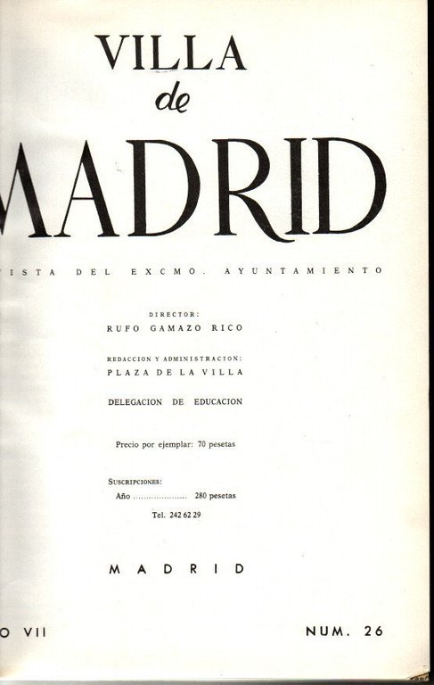 VILLA DE MADRID. REVISTA DEL EXCMO. AYUNTAMIENTO. AÑO VII. N. 26. N. 27. AÑO VIII. N. 31. N. 32. AÑO X. N. 38.