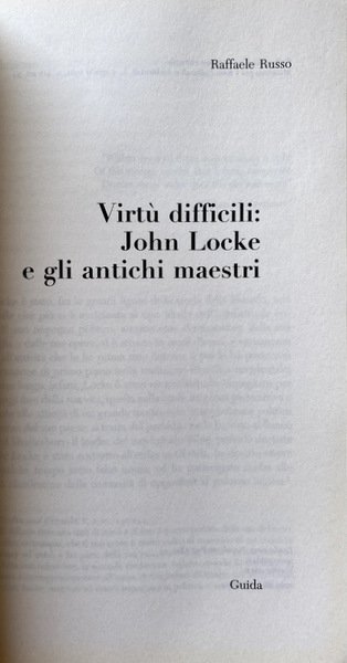 VIRTÙ DIFFICILI. JOHN LOCKE E GLI ANTICHI MAESTRI