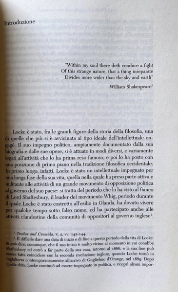 Soggetti: Filosofia, Società, Scienze sociali, Etica, Morale, Lord Shaftesbury, Politica, Whig, Inghilterra, Gran Bretagna, Intellettuali, Oppositori politici, Guerra civile inglese, Seicento, Illuminismo, Criticismo, Liberalismo, Esperienza, Pensiero filosofico, Formazione giovanile, Empirismo, Saggio sull'intelletto umano, Potere, Innatismo, Tolleranza Religiosa, Pedagogia, Opere generali, Saggi, Libri Vintage fuori catalogo, Esistenza di Dio, Lord Ashley, Cancelliere, Cartesio, Gassendi, Libertini, Carlo II, Paesi Bassi, 1689, Exclusion Bill, Giacomo, Gloriosa rivoluzione, Guglielmo d'Orange, Epistola al lettore, Oxford, Nayler, Sette religiose, Commonwealth, Restaurazione, Antinomismo, Antichi maestri, Two Tracts on Government, Leggi di natura, Problema etico, Proprietà, Bibliografia, First Tract, Primo trattato sul governo, Robert Filmer, Giusnaturalismo, Thomas Hobbes, Critica, Idee, Philosophy, Society, Social Sciences, Ethics, Morals, Politics, England, Great Britain, Intellectuals, Political Opponents, English Civil War, 17th Century, Enlightenment, Criticism, Liberalism, Experience, Philosophical Thinking, Youth Education, Empiricism, Essay on Human Intellect, Power, Innatism, Religious Tolerance, Pedagogy, General works, Essays, Books out of print, Existence of God, Chancellor, Descartes, Libertines, Charles II, Netherlands, James, Glorious revolution, William of Orange, Epistle to the reader, Seven religious, Restoration, Antinomianism, Ancient masters, Laws of nature, Ethical problem, Property, Bibliography, First treatise on government, Natural law, Criticism, Ideas