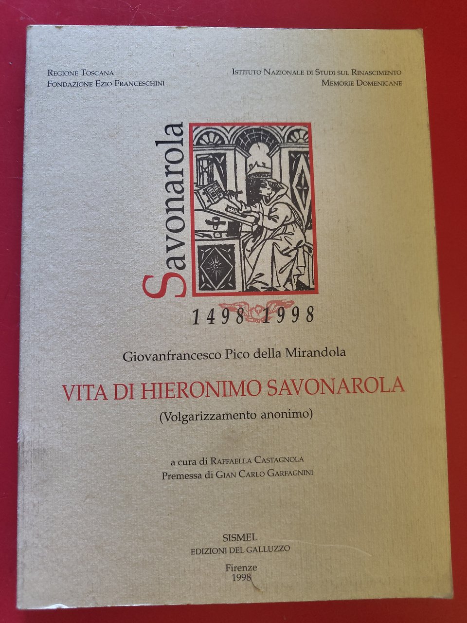 Progetto Savonarola e la Toscana, Regione Toscana, Fondazione Ezio Franceschini, Istituto Nazionale di Studi sul Rinascimento, a cura di Raffaella Castagnola, premessa di Gian Carlo Garfagnini, brossura, formato 8, pagine XXVI-98, ottime condizioni - 5009