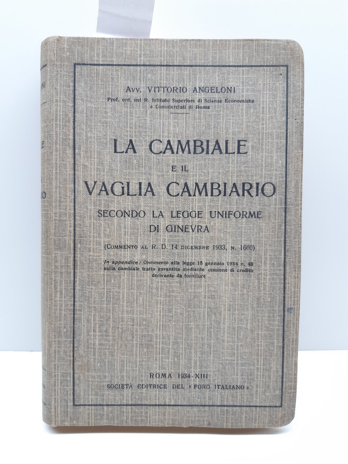 La cambiale e il vaglia cambiario Secondo la legge uniforme di Ginevra copertina rigida editoriale in tela con titoli al piatto anteriore e al dorso, alcune bruniture e lievi sporcizie ai piatti, tagli ingialliti con lievi fioriture e qualche segno a penna blu, fogli di guardia decorati, interno in buono stato n. pagine 586 dimensioni cm 18,3 x 12,5