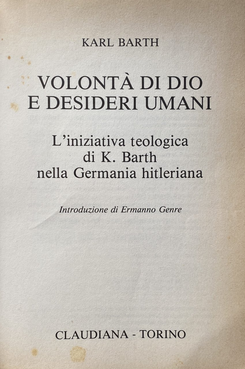 Titolo: Volontà di Dio e desideri umani. L'iniziativa teologica di K. Barth nella Germania hitleriana