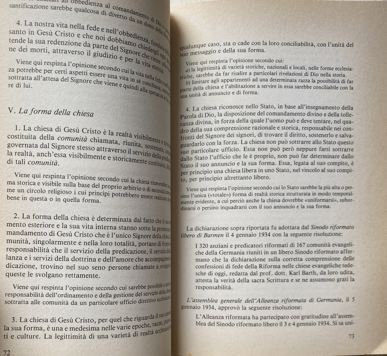 Erklärung über das rechte Verständnis der reformatorischen Bekenntnisse in der Deutschen Evangelischen Kirche der Gegenwart, in Theologische Existenz heute, Heft 7 (1934). Traduzione di Daniele Garrone
