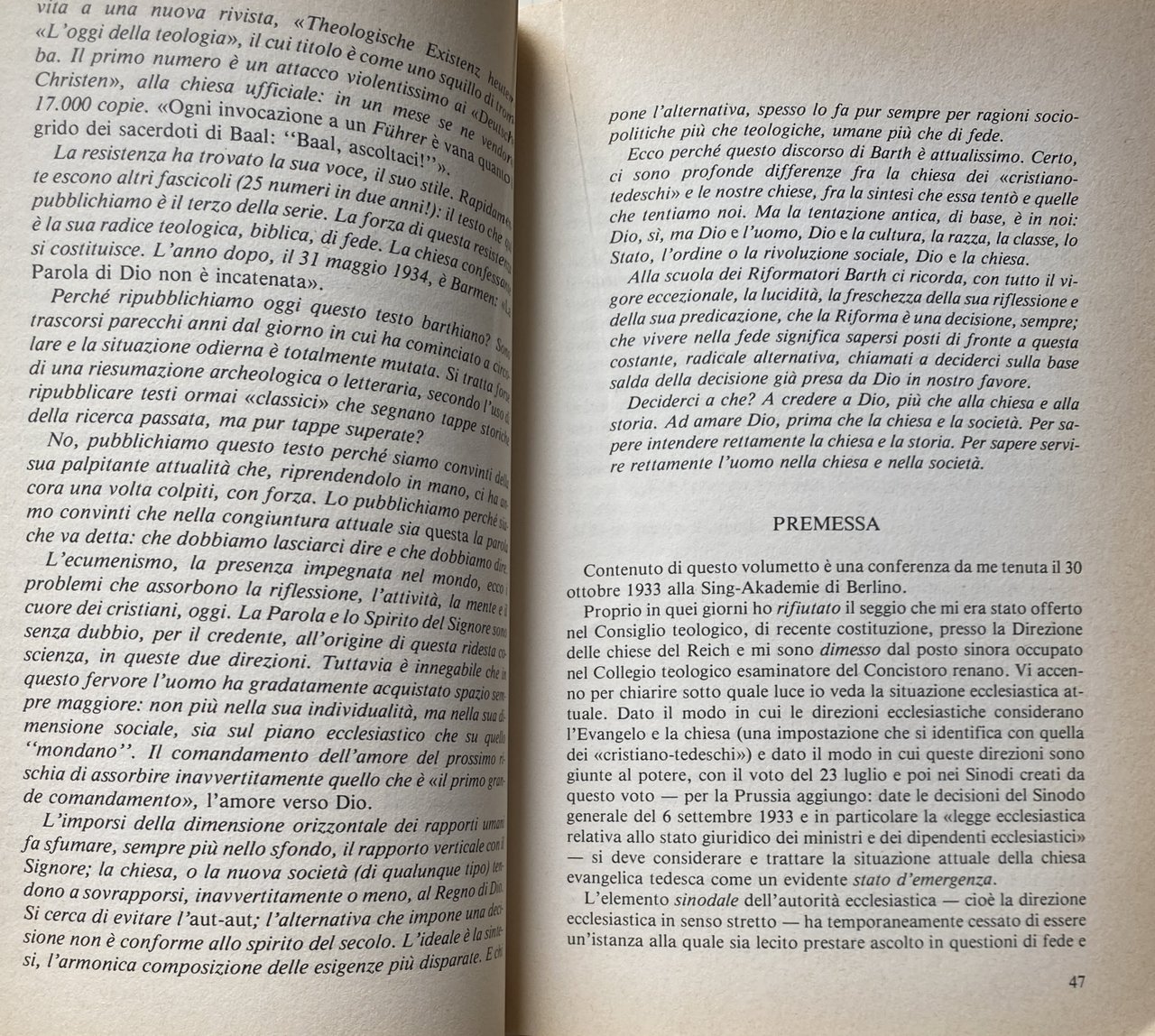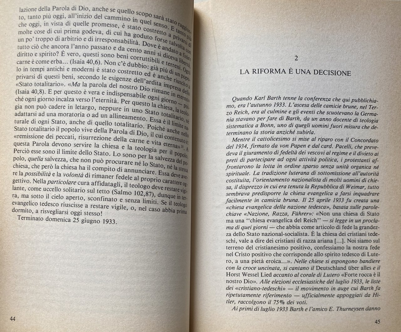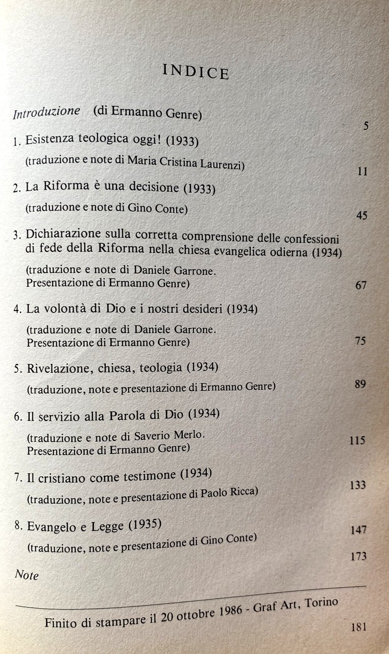 VOLONTÀ DI DIO E DESIDERI UMANI L'INIZIATIVA TEOLOGICA NELLA GERMANIA HITLERIANA. ESISTENZA TEOLOGICA OGGI, LA RIFORMA È UNA DECISIONE, DICHIARAZIONE SULLE CONFESSIONI DI FEDE DELLA RIFORMA, LA VOLONTÀ DI DIO E I NOSTRI DESIDERI, RIVELAZIONE, CHIESA, TEOLOGIA, IL SERVIZIO ALLA PAROLA DI DIO, IL CRISTIANO COME TESTIMONE, EVANGELO E LEGGE. Theologische Existenz heute!, Reformation als Entscheidung, Erklärung über das rechte Verständnis der reformatorischen Bekenntnisse in der Deutschen Evangelischen Kirche der Gegenwart, Gottes Wille und unsere Wünsche, Offenbarung, Kirche, Theologie, Der Dienst am Wort Gottes, Der Christ als Zeuge, Evangelium und Gesetz