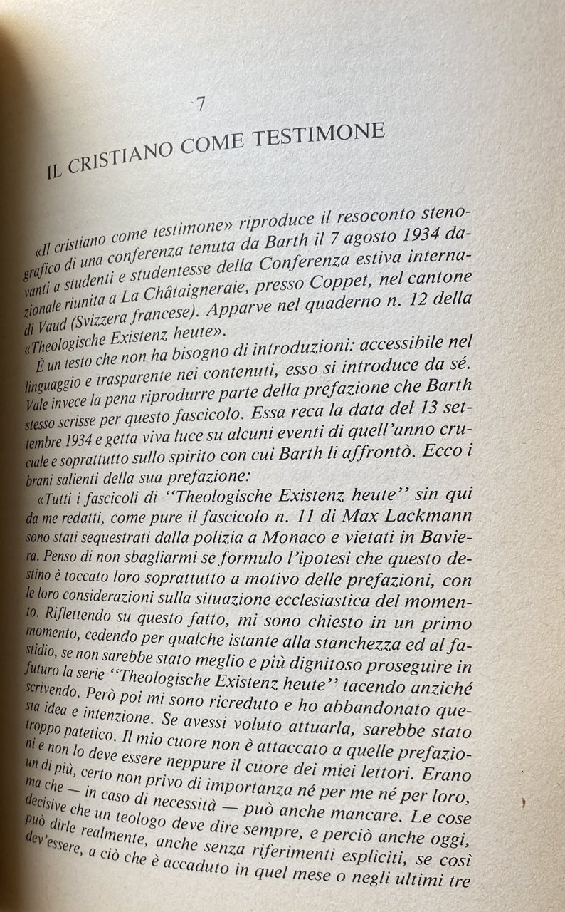 Der Christ als Zeuge (Theologische Existenz heute, Heft 12, 1934). Traduzione di Paolo Ricca