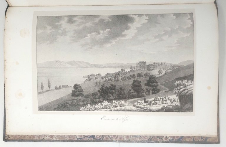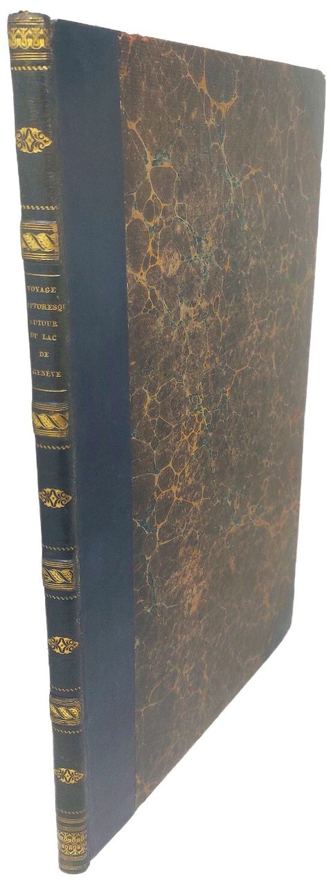 >in-folio, pp. (4), 62, leg. coeva m. marocchino blu e ang., dorso a nervi con tit. e fregi oro. Illustrato da una carta topogr. incisa in rame e colorata a mano e da 11 artistiche vedute a piena pagina litografate in bianco-nero da G. Engelmann, tirate su carta di cina ed applicate su carta forte (Evian, Meillerie, Gingolphe, Montreux, Vevey, Ouchy, Lausanne, Morges, Rolle, Nyon, Genève). Raro e bellissimo album. Esempl. a pieni margini, perfettamente conservato. Lonchamp n. 743.