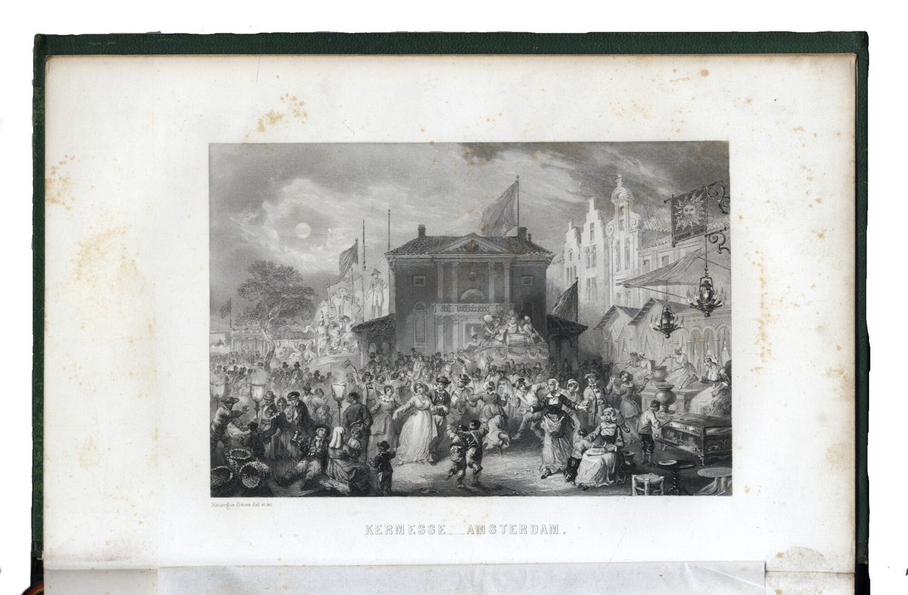 >in-8 grande, pp. (4), viii, 484, leg. coeva in mezza pelle e percallina verdone, cornici impresse a secco ai piatti, dorso a nervi con tit. e fregi oro, tagli dor. Con 22 belle tavole fuori testo incise su acciaio dai Frères Rouargue (di cui quattro a colori). Celebre opera ottocentesca arricchita da un bel apparato iconografico composto da vedute di città (Anvers, Rotterdam, La Haye, Leyde, Haarlem, Amsterdam, Zaandam, Broek, Bruxelles, Gand, Anvers, Waterloo, Lacken, Malines, Louvain, Liége, Namur etc), scorci e mestieri. Buon esempl. Vicaire VII, 779; Koumans, p. 158; Van der Meulen, p. 34.