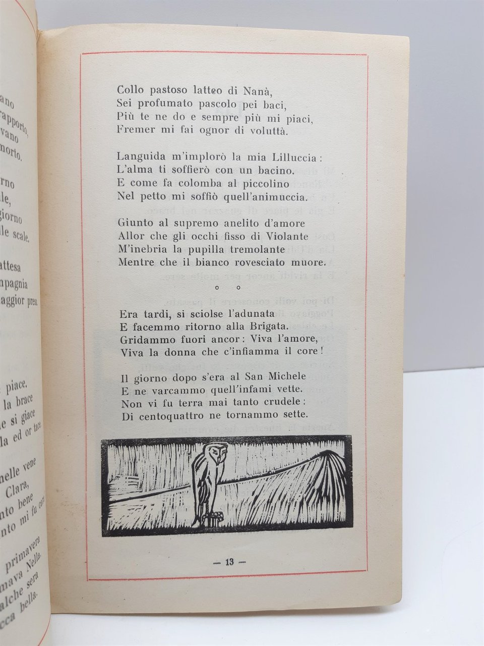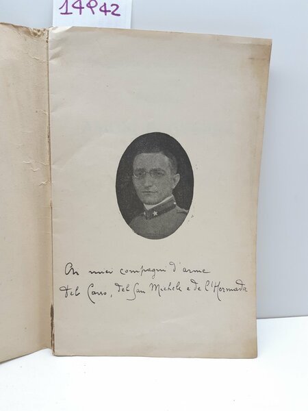 Copertina morbida editoriale in condizioni accettabili con uno strappo al margine interno in corrispondenza della graffa, carta leggermente usurata, uno strappo di circa cm 4 al margine inferiore tra i piatti, piccole pieghe e spellature ai margini dei piatti, alla seconda di copertina ex-libris, dedica all'antiporta, interno in condizioni accettabili, testo su cornice rossa, numero pagine 23 dimensioni cm 20,5 x 13,5