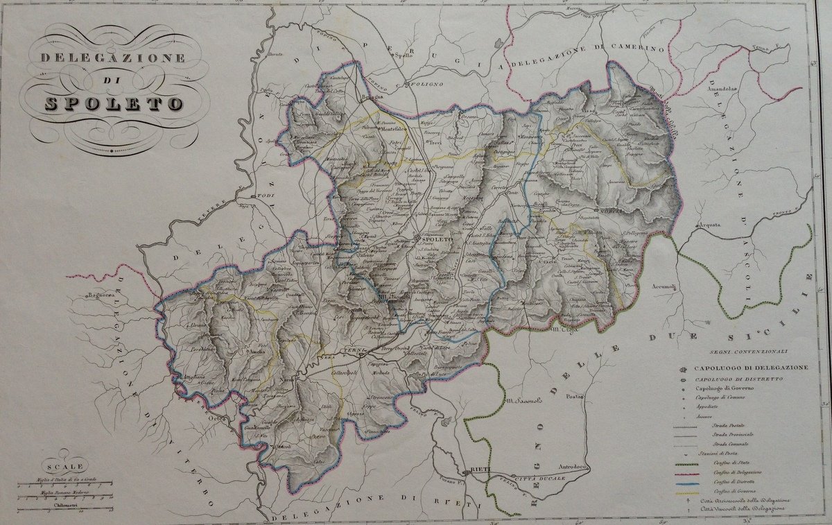 Zuccagni Orlandini Acquaforte Originale 1840 Atlante Geografico Spoleto