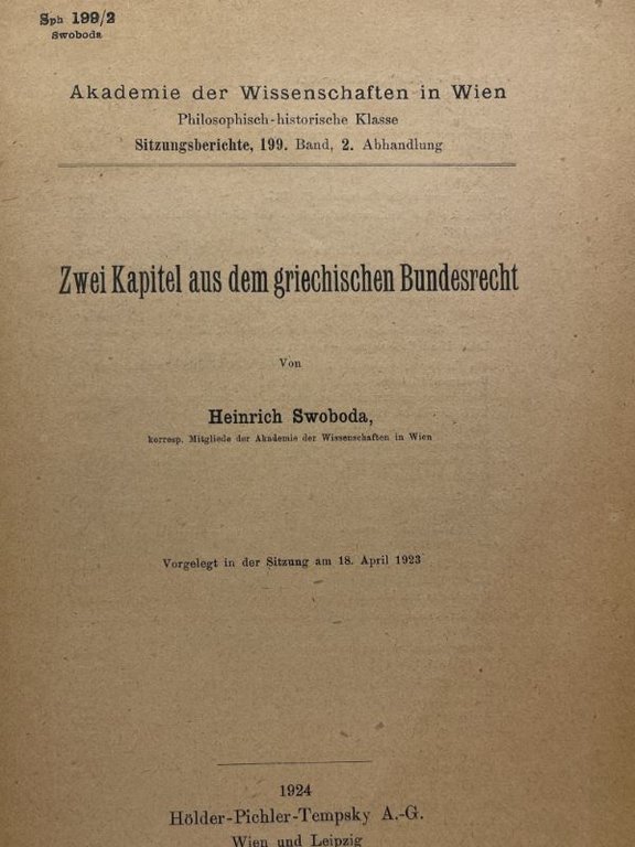 Zwei Kapitel aus dem griechischen Bundesrecht