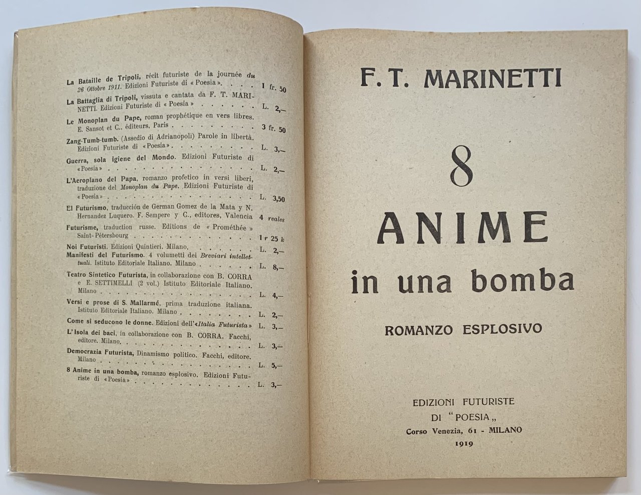 8 anime in una bomba. Romanzo esplosivo | Libros antiguos y modernos | MARINETTI, Filippo Tommaso (Alessandria d''Egitto 1876 - Bellag
