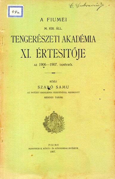 A Fiumei M. Kir. All. Tengerészeti Akadémia XI. E'rtesitoje az 1906-1907 Tanévrol | Libros antiguos y modernos | Szabo Samu
