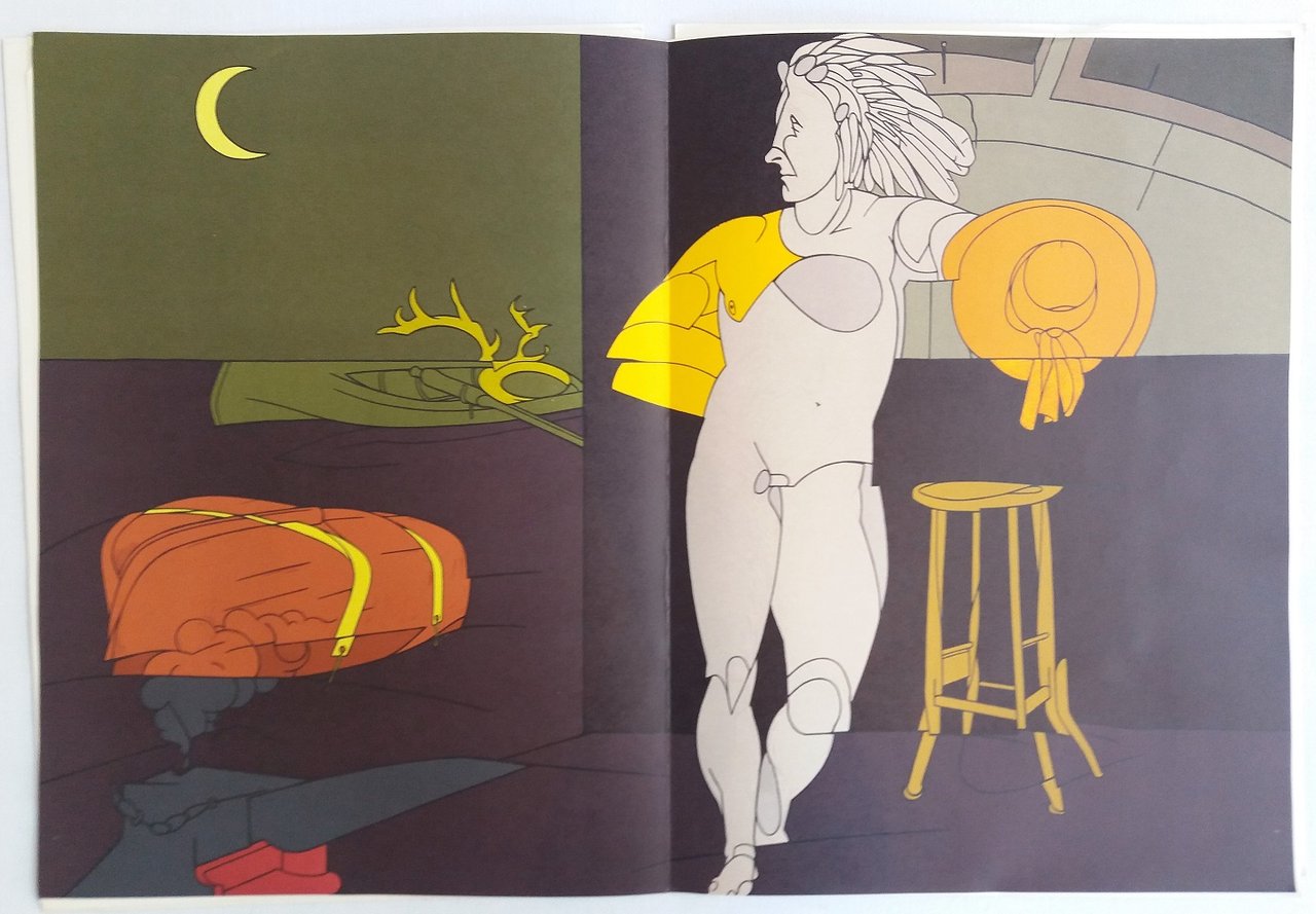 Testo di Italo Calvino in francese ("Quatre fables d'Esope pour Valerio Adami") con originale in italiano su quartino sciolto allegato ("Quattro favole d'Esopo per Valerio Adami"). 2 litografie originali a colori (cm 56x38, pp. 4-5 e 12-13). Alcune tavole a colori e in bianco e nero a piena pagina. Elenco delle opere esposte Litografie tirate sui torchi dell'Imprimerie moderne du Lion, Parigi. 4to (cm 38x28). pp. 28. . Ottimo (Fine). . . Derriere Le Miroir [Maeght, 1983] Maeght Adrien, Derriere Le Miroir 1946 - 1982. Paris, Maeght Editeur 1983.
