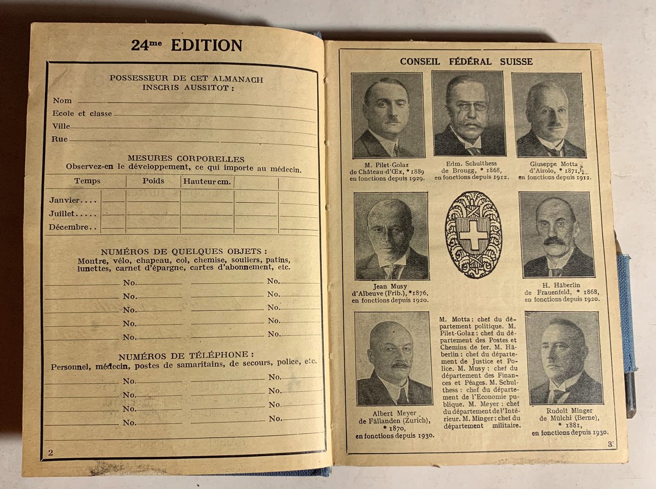 Almanach Pestalozzi 1933. Agenda de poche des écoliers suisses. Recommandé par la Societé pédagogique de la Suisse romande.