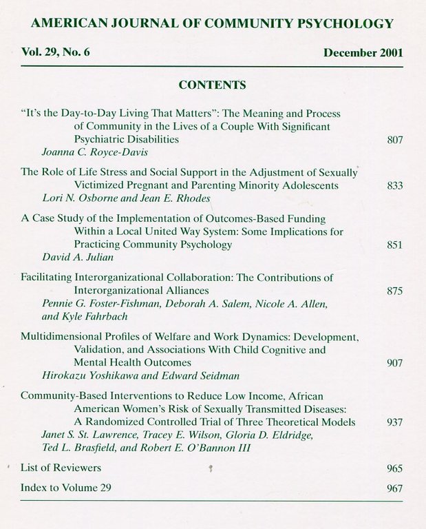 American Journal of Community Psychology : Dec 2001 : Vol 29 No 6