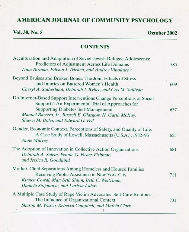 American Journal of Community Psychology : Oct 2002 : Vol 30 No 5