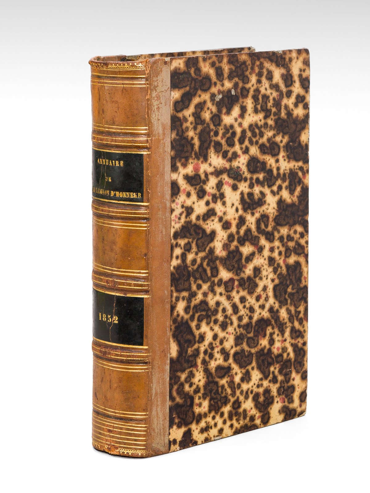 1 vol. in-8 reliure de l'époque demi-veau brun, dos à 4 nerfs, Imprimerie Impériale, Paris, 1853, XXIX-678 pp. et 1 f. n. ch. Rare exemplaire de cet annuaire dont la publication fut décidée par l'article 57 du décret-loi du 16 mars 1852. L'ouvrage fournit les noms, prénoms, qualités, grades dans la Légion, dates des nominations ou promotions d'environ 20.000 légionnaires. Bon état (reliure lég. frottée, bon exemplaire par ailleurs, ex-libris ms. en garde)