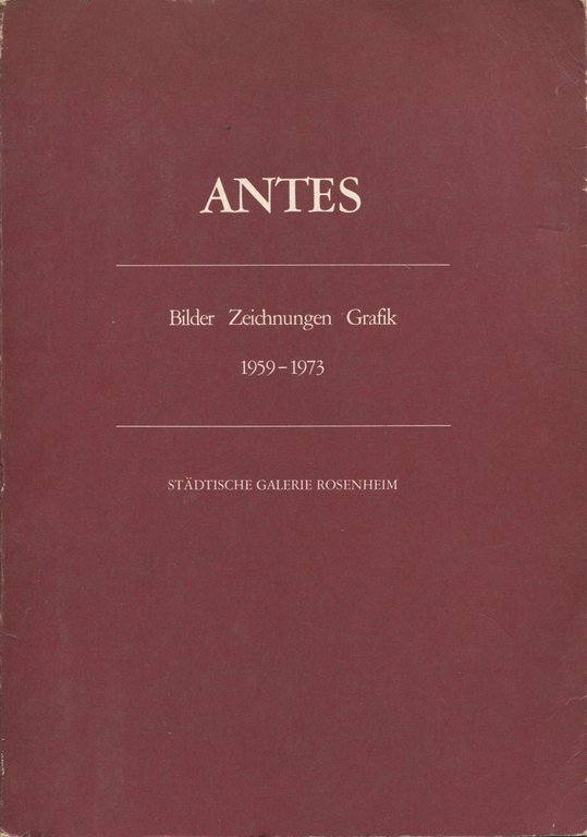 Dalla collezione Wolf e Ursula Hermann, Brema. Catalogo della mostra delle opere di Antes, presso la Stadtische Galerie Rosenheim, Brema, 3 marzo - 14 aprile 1974. Note tecniche delle opere. Con illustrazioni in bianco e nero e a colori . Cm 24x17. pp. 80. . Molto buono (Very Good). . . . Nei suoi primi dipinti, Horst Antes ha cercato un percorso a metà tra pittura figurativa e l'arte informale. Intorno al 1960 Antes ha scoperto il suo ‘”Kopffüßler“, una forma che interessava l'artista in numerose varianti e tecniche artistiche. Ha vinto diverse borse di studio e premi nel corso degli anni Sessanta, tra cui il Villa-Romana-Prize a Firenze nel 1962 e la borsa di studio di Villa Massimo a Roma nel 1963. Tre anni dopo, all'età di soli 29, Antes ha accettato una cattedra presso l'Akademie di Karlsruheche che ha mantenuto dal 1965 al 1971. Questa è stata seguita da un posto di professore anche a Karlsruhe che ha ricoperto dal 1967 al 1973, così come un anno alla Staatliche Hochschule für Bildende Künste di Berlino. L'artista riprende l'insegnamento all'Akademie a Karlsruhe nel 1984 e continua ad insegnare lì per altri 16 anni. Dal 1990 Antes vive e lavora a Karlsruhe, Firenze e Berlino. La sua opera include non solo dipinti e grafica, ma anche sculture in spazi pubblici. Le sue opere sono esposte in tutto il mondo e sono rappresentati in tutte le più importanti collezioni tedesche: al Kunsthall di Amburgo, al Ludwig Museum di Colonia, alla Nationalgalerie di Berlino, e al Museo d'Arte Moderna. Ha sviluppato uno stile caratterizzato da archetipi primordiali, affiancati da influenze surrealiste.