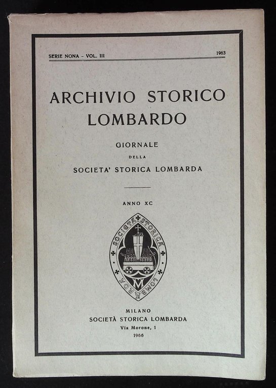 in 8° grande, bross. ed. pp. 528 coll. Archivio Storico Lombardo / Serie Nona / Volume n° 3 / Anno 1963 Tavole b/n f.t. Presentazione di Franco Valsecchi. Legatura stanca e segni del tempo ai dorsi, altrimenti in ottimo stato (A26)