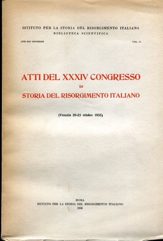 Atti del XXXIV Congresso di storia del Risorgimento italiano (Venezia 20 - 23 ottobre 1955).