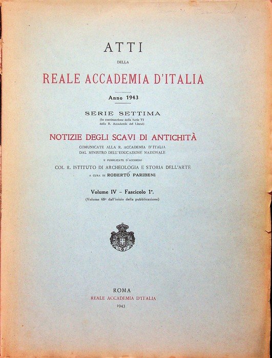 Atti della Reale accademia d'Italia: Anno 1943: Serie settima: notizie degli scavi di antichità : Vol. IV - Fasc. 1°. | Libros antiguos y modernos |